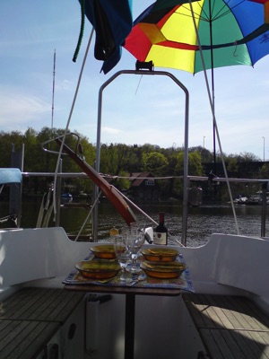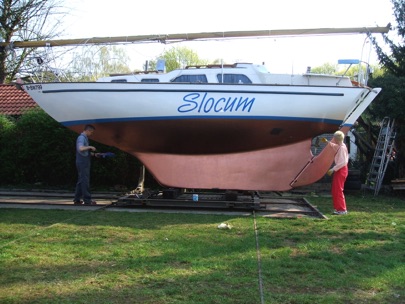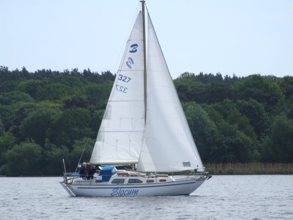 Unsere 'SLOCUM' war sicher das richtige Einsteigerboot für uns unerfahrene Segler. Als Langkieler sehr gutmütig und sicher, der Rumpf sehr steiff, das Rigg sehr stabil und der Innenausbau bot zunächst einmal alles, was man für ein Wochenende benötigt.
